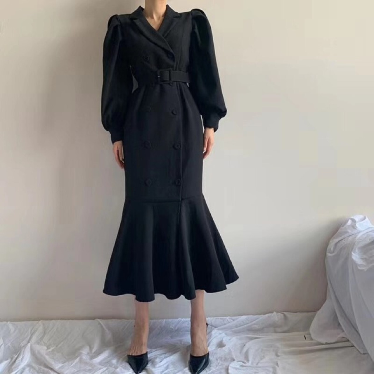 アウター スーツ コート 膝下 ロング ロング丈 長袖 パフスリーブ Vネック 襟付き 細身 マーメイド ウエストリボン ハイウエスト 大人可愛い きれいめ シンプル カジュアル 大人 上品 レトロ 大人女子 エレガント フォーマル 無地 秋 20代 30代 40代 レディース 通勤 デート お出かけ 休日 旅行 ホテル レストラン ショッピング 普段使い 韓国系 ファッション コーデ S M L XL ブラウン ブラック 濃いグリーン 秋カラー | ATAOI