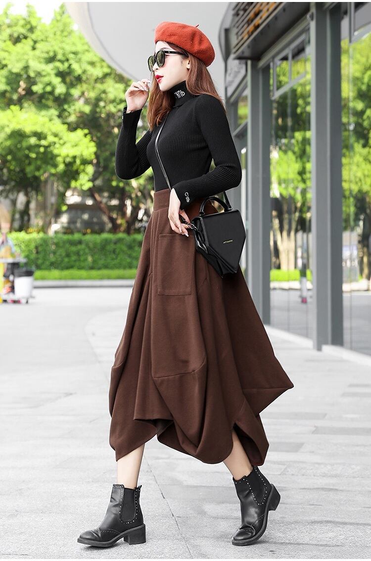 個性的 ロングスカート ランタンスカート ミモレ丈 膝下 イレギュラー プリーツ ドレープ かわいい 大人可愛い シンプル 大人 上品 おしゃれ お洒落 かっこいい レトロ 大人女子 こなれ感 モダン 主役級 存在感 無地 秋 冬 誕生日 ハロウィン 20代 30代 40代 レディース 女性用 ママ 学生 通学 デート お出かけ 公園 女子会 休日 重ね着 着回し 普段使い ファッション コーデ スタイル 楽ちん サイズS M L XL 2XL ブラウン ブラック | ATAOI
