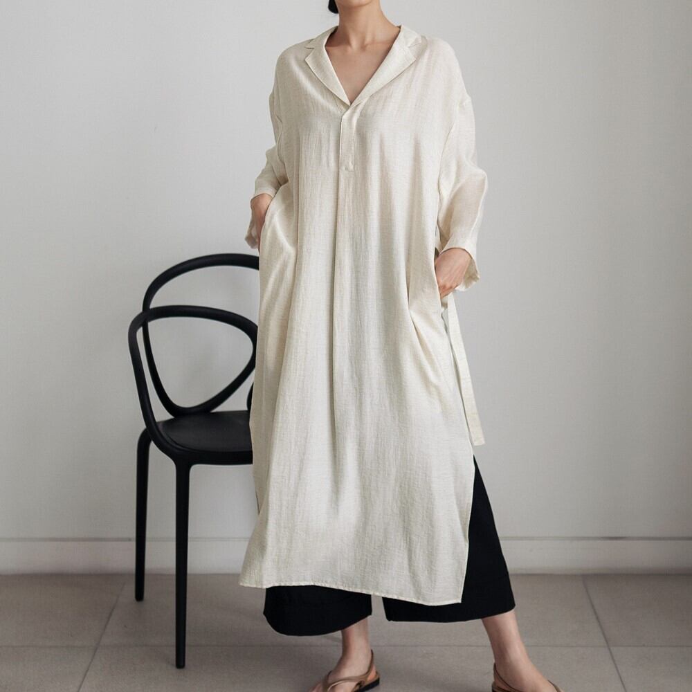 リネン素材でとろみ感の感じられる秋にぴったりのワンピース。