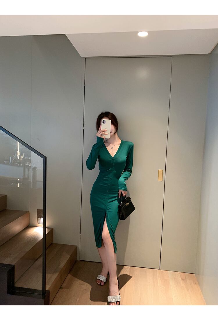 ロング Vネック 長袖ワンピース 大人 デート マキシ マキシ丈 袖あり 萌袖 セクシー スリム タイト 細身 ストレート Iライン スマート 前開き 2way 薄手 大人可愛い きれいめ シンプル カジュアル 大人 上品 お洒落 かっこいい 大人可愛い 大人女子 無地 春 夏 秋 10代 20代 30代 40代 レディース 女性用 ママ デート お出かけ 女子会 休日 イベント ショッピング 着回し 普段使い 重ね着 ファッション モテ S M L | ATAOI