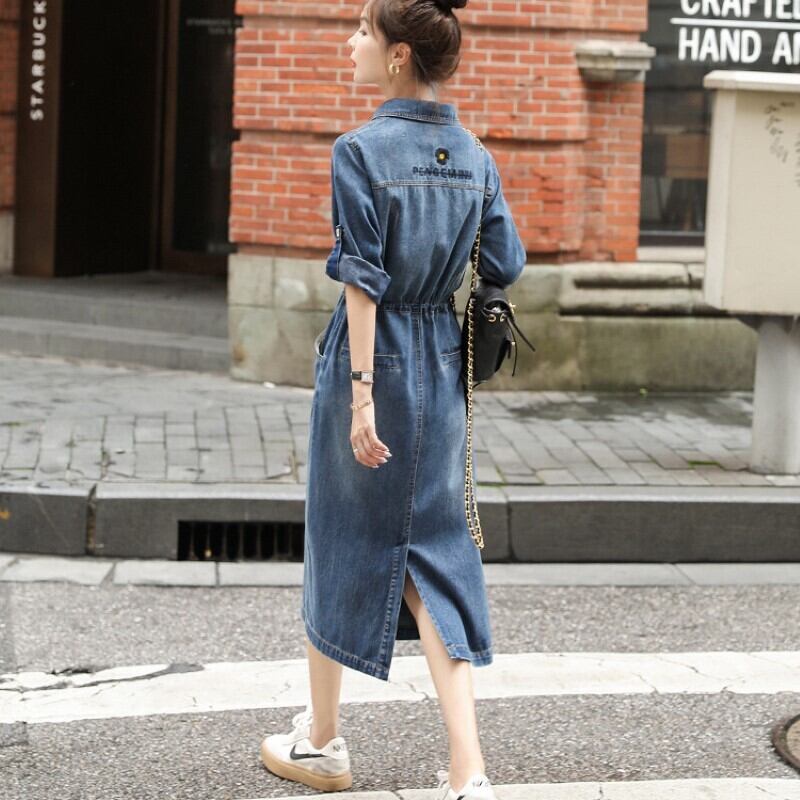 ワンピース デニムワンピース 膝下 ミモレ ミモレ丈 袖あり 長袖 角襟 Aライン ウエストリボン ハイウエスト 前開き 大人可愛い きれいめ シンプル カジュアル おしゃれ 大人女子 こなれ感 ボーイッシュ ガーリー 抜け感 無地 春 秋 20代 30代 40代 レディース 女性用 デート お出かけ 休日 イベント リゾート 旅行 海 高原 ガーデン レストラン ショッピング 普段使い スタイル 楽ちん S M L XL 2XL レトロネイビー ライトネイビー | ATAOI