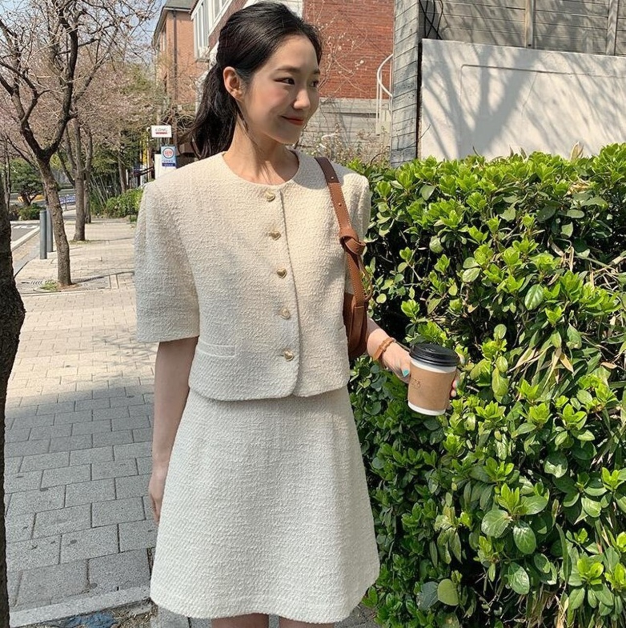 アウター ジャケット 上着 ショートジャケット 袖あり 半袖 襟なし ノーカラー ラウンドネック 前開き 前ボタン 着回し 普段使い かわいい 大人可愛い きれいめ シンプル 大人 上品 お洒落 大人女子 こなれ感 無地 春 夏 秋 10代 20代 30代 レディース 女性用 通勤 通学オフィス OL お出かけ イベント オルチャンファッション ワンサイズ カラー アプリコット | ATAOI