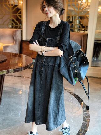 ワンピース デニムワンピース サスペンダードレス オーバーオールスカート ポケット マキシ丈 Aライン フレア 体型カバー 大人可愛い シンプル 大人カジュアル おしゃれ ナチュラル レトロ オールシーズン 無地 春 夏 秋 冬 レディース 10代 20代 30代 休日 デート お出かけ 公園 ショッピング 着回し 普段使い オルチャンファッション カジュアルコーデ ナチュラルスタイル サイズ S M L XL カラー ブラック | ATAOI