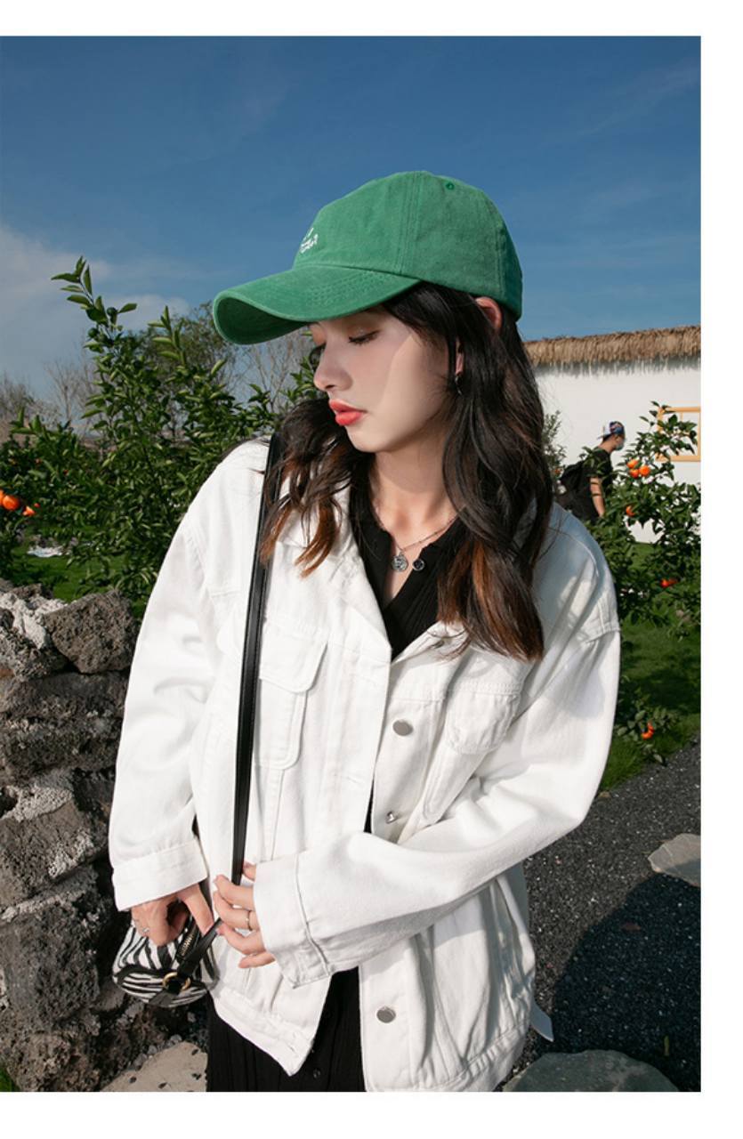 白のデニムジャケットは清潔感のある軽やかな着こなしにぴったりなアイテムです。