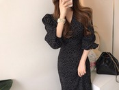 ドレス パーティドレス ワンピース ワンピドレス ロング ロング丈 袖あり 長袖 ボリューム袖 Vネック 襟なし フレア スリム タイト 細身 スリット サイドスリット きれいめ 大人 おしゃれ お洒落 かっこいい 大人女子 クール セクシー エレガント 存在感 春 夏 秋 冬 オールシーズン 結婚式 二次会 披露宴 10代 20代 30代 レディース 女性用 パーティー イベント 韓国 韓国系 スタイル モテ 美脚 サイズ S M L 色展開 黒 ブラック | ATAOI
