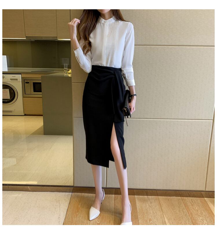 トップス シャツ ブラウス 白シャツ 白トップス 袖あり 長袖 襟付き スタンドカラー 細身 ストレート プリーツ きれいめ シンプル カジュアル 大人 上品 おしゃれ お洒落 かっこいい 大人女子 こなれ感 ラフ クール 無地 春 夏 秋 冬 オールシーズン 10代 20代 30代 レディース 女性用 オフィス ビジネス OL 通勤 リクルート 就活 着回し 普段使い 重ね着 コーデ サイズ S M L XL 2XL 色展開 白 ホワイト 緑 グリーン | ATAOI