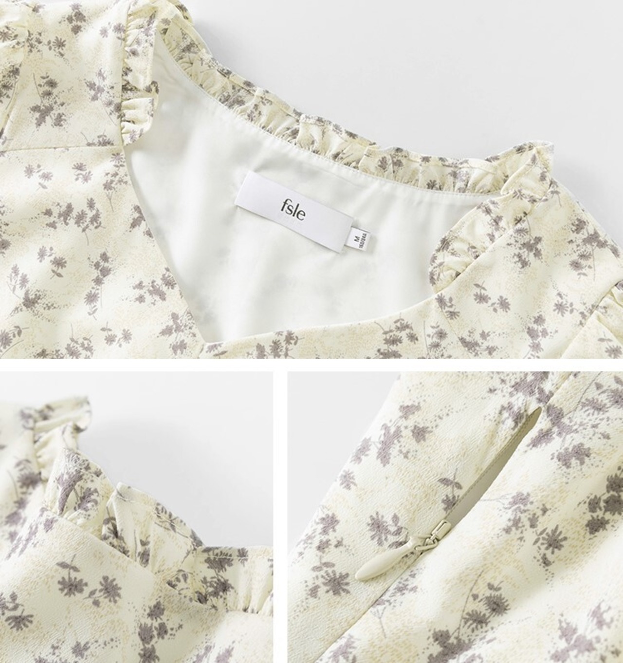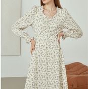 ワンピース フレアワンピース ひざ下丈 ミモレ ミモレ丈 長袖 Vネック フレア セミフレア フリル 袖フリル Aライン かわいい 大人可愛い きれいめ 大人 上品 おしゃれ 大人可愛い 華やか 大人女子 こなれ感 エレガント フェミニン 主役級 存在感 とろみ感 春 秋 冬 花柄 小花柄 10代 20代 30代 40代 50代 レディース ママ デート 通勤 OL お出かけ 女子会 パーティー イベント ホテル レストラン 韓国 韓国系 モテ トレンド インスタ映え S ベージュ | ATAOI