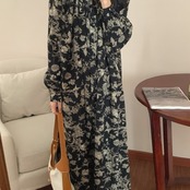 ワンピース フレアワンピース マキシ マキシ丈 袖あり 長袖 ラウンドネック 襟なし フレア Aライン プリーツ ベルト 透け感 かわいい 大人可愛い きれいめ カジュアル 上品 おしゃれ 大人女子 こなれ感 ラブリー キュート とろみ感 抜け感 花柄 春 夏 結婚式 二次会 20代 30代 40代 レディース 女性用 デート お出かけ 休日 パーティー イベント 高原 ホテル ガーデン レストラン ショッピング 着回し 楽ちん モテ フリーサイズ 春カラー | ATAOI