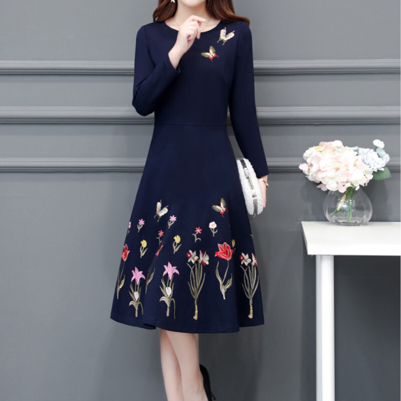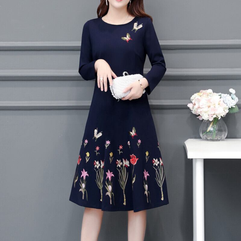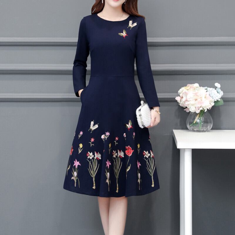 ドレス ワンピース パーティードレス 二次会ドレス ワンピースドレス 袖あり 長袖 ラウンドネック Aライン ハイウエスト フレア ウエストマーク レトロ フォーマル エレガント かわいい 大人可愛い きれいめ 上品 おしゃれ ラブリー キュート 花柄 10代 20代 30代 レディース お出かけ 女子会 パーティー イベント 韓国系 オルチャン ファッション コーデ スタイル モテ 春 秋 2次会 お呼ばれ パーティー L XL 2XL 3XL 4XL 5XL ネイビー | ATAOI