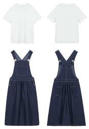 着回ししやすい白Tシャツとサロペットのセット。