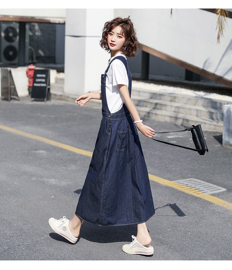 デニムサロペット Tシャツ オールインワン サロペット ロング ロング丈 半袖 Aライン デニム かわいい 大人可愛い シンプル カジュアル おしゃれ お洒落 レトロ こなれ感 ラフ キュート ルーズ 主役級 存在感 無地 春 夏 10代 20代 レディース デート お出かけ 公園 女子会 休日 リゾート ショッピング 着回し 普段使い スタイル 楽ちん 定番 2点セット 上下セット サイズ S M L | ATAOI