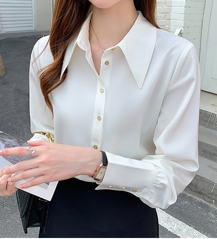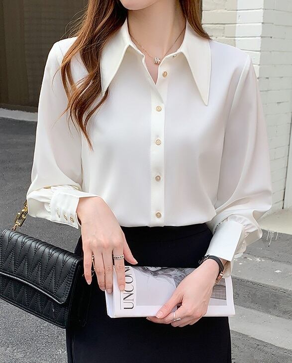 トップス シャツ ブラウス 白シャツ 白トップス 金ボタン 袖あり 長袖 きれいめ シンプル 大人 上品 おしゃれ お洒落 大人女子 モダン きれいめ 無地 春 秋 10代 20代 30代 40代 レディース 女性用 オフィス ビジネス OL 通勤 学生 通学 お出かけ 休日 ファッション コーデ スタイル サイズ S M L XL 2XL 色展開 白 ホワイト 黒 ブラック | ATAOI