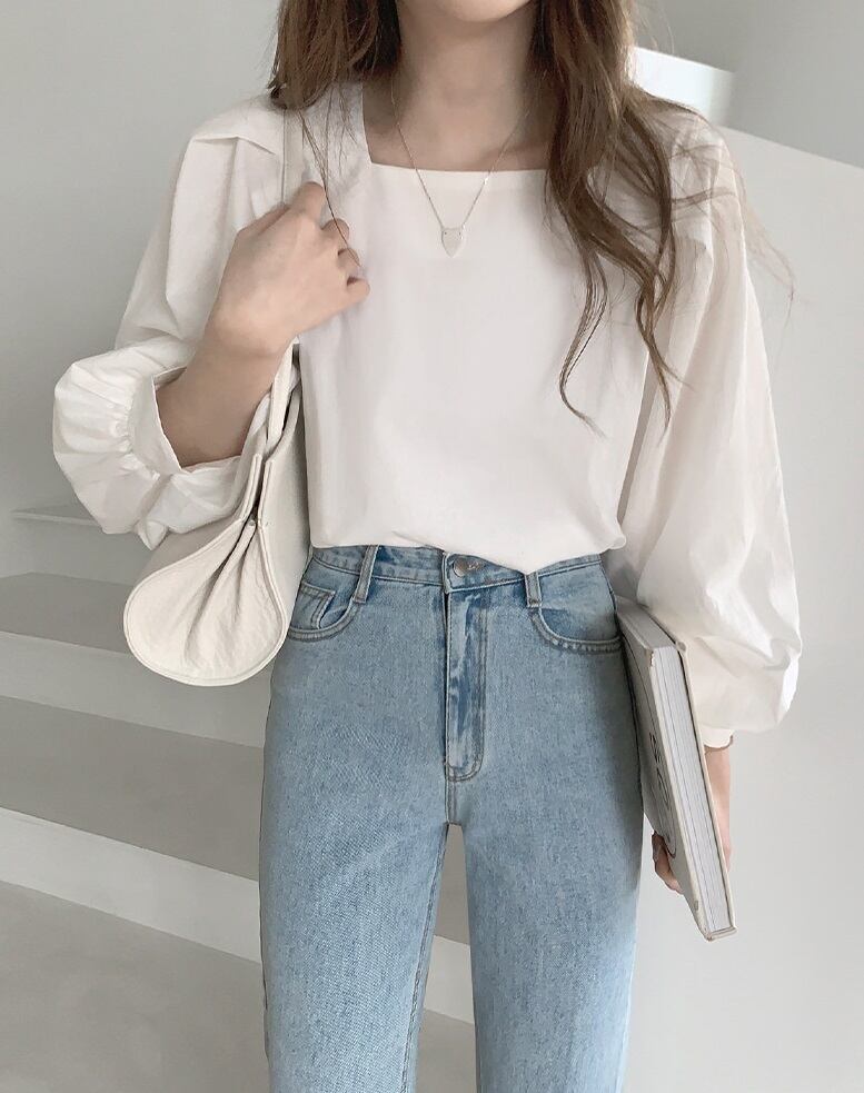 トップス ブラウス プルオーバー 袖あり 長袖 ボリューム袖 パフスリーブ スクエアネック かわいい おとなかわいい シンプル カジュアル 大人 おしゃれ お洒落 大人可愛い ガーリー モダン 無地 春 秋 10代 20代 30代 レディース 女性用 オフィス OL 通勤 学生 通学 デート お出かけ 女子会 着回し ファッション コーデ スタイル 楽ちん サイズ S M L XL 色展開 白 ホワイト 水色 ライトブルー | ATAOI