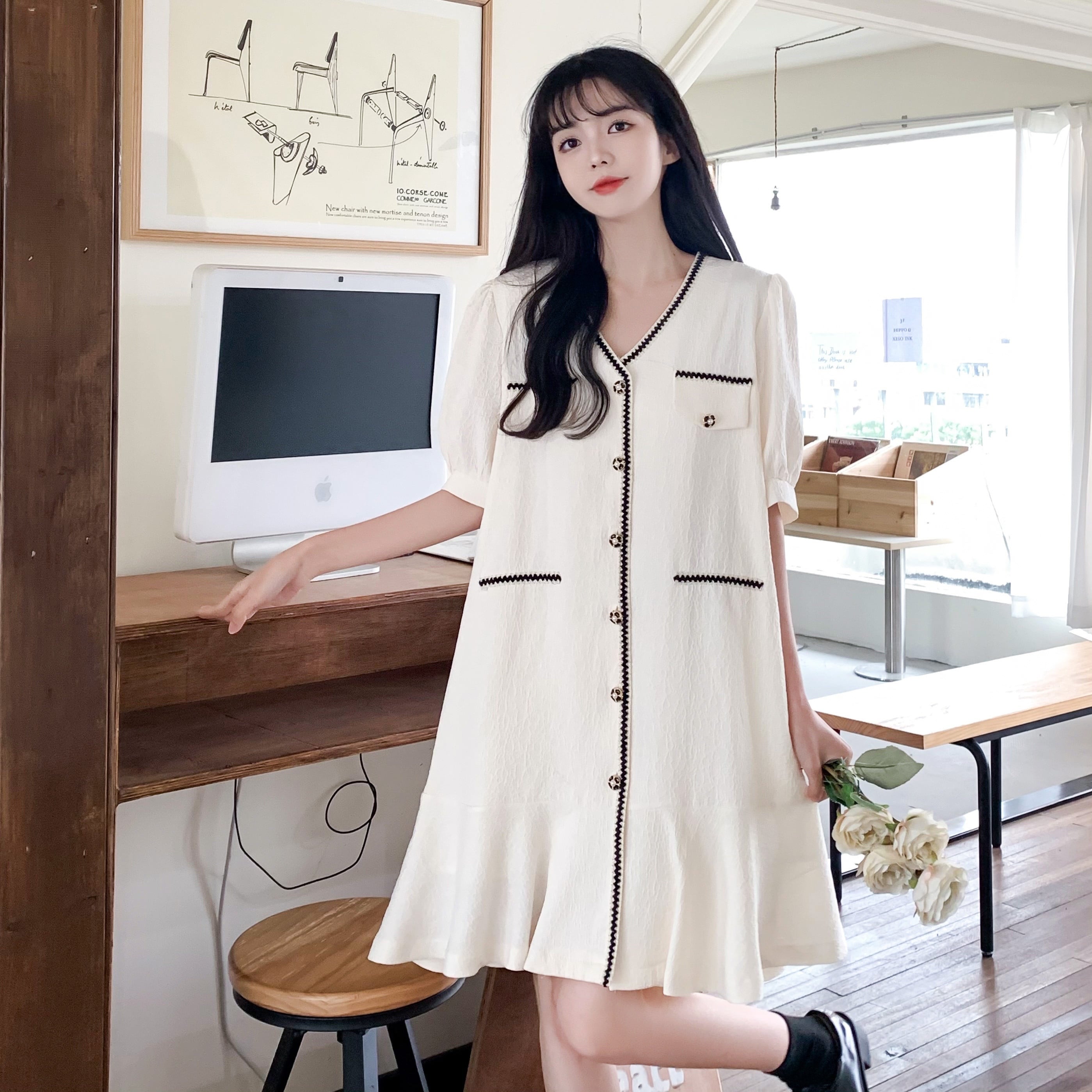 ワンピース シャツワンピース ショート ショート丈 膝上 袖あり 半袖 Vネック フレア ボタン かわいい おしゃれ お洒落 ラブリー キュート ガーリー 無地 夏 10代 20代 レディース 女性用 学生 通学 デート お出かけ 女子会 休日 ファッション コーデ スタイル 楽ちん サイズ M L XL 2XL 3XL 4XL 大きいサイズ ゆったり ゆる 色展開 白 ホワイト 黒 ブラック | ATAOI