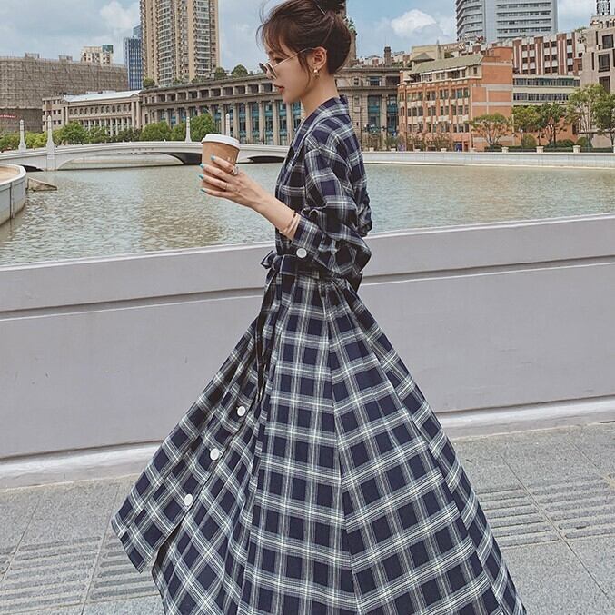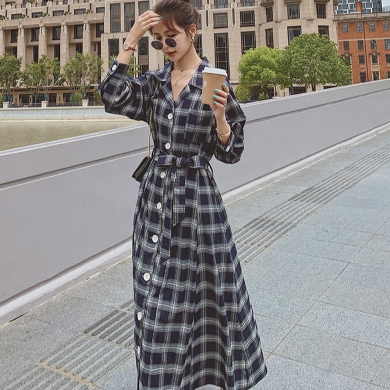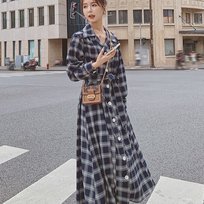 ワンピース ブラウス オールインワン ロングスカート フレアスカート シャツワンピース フレアワンピース ロング丈 アンクル丈 袖あり 長袖 Vネック 襟付き セミフレア Aライン ウエストマーク 前開き かわいい 大人可愛い きれいめ カジュアル 大人 おしゃれ レトロ 大人女子 こなれ感 ラフ 抜け感 格子柄 春 秋 レディース ママ 通勤 通学 デート お出かけ 公園デビュー 女子会 休日 アウトドア 旅行 高原 ガーデン 普段使い 楽ちん モテ 体系カバー S M L XL ゆったり ブラック | ATAOI