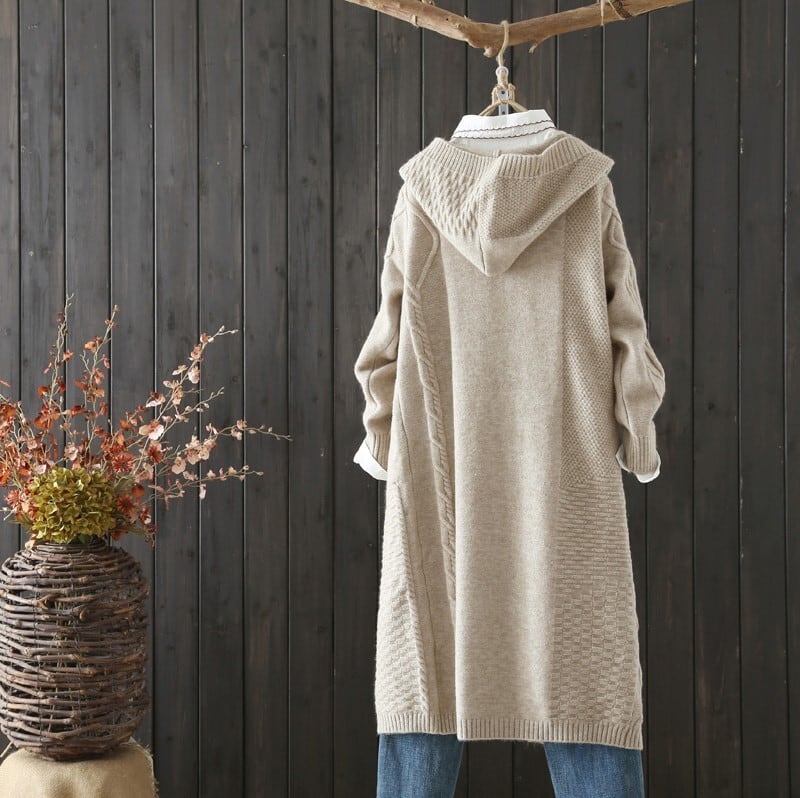 アウター コート ニットダッフルコート ニットカーディガン ミディアム丈 フード付き 袖あり 長袖 Vネック 前開き ルーズフィット ゆったり カジュアル レトロ 大人可愛い スタンダード 着回し キュート 大人 おしゃれ 大人女子 柄 秋 冬 イベント 10代 20代 30代 40代 レディース 女性用 OL 通勤 オフィス 学生 通学 デート カフェ お出かけ 休日 ショッピング 公園 アウトドア 旅行 普段使い オルチャンファッション モテコーデ トレンド ワンサイズ カラー ベージュ | ATAOI