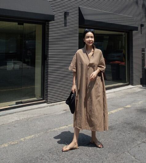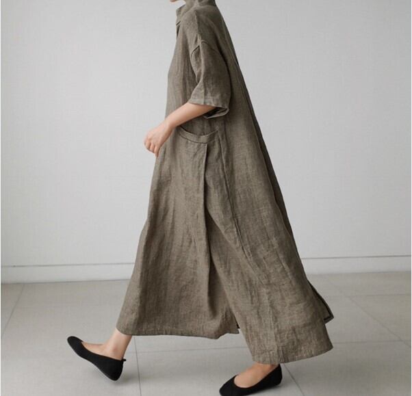 ワンピース シャツワンピース ロング ロング丈 袖あり 5分袖 五分袖 Vネック 襟付き ワイド 裾ワイド バックスリット かわいい 大人可愛い シンプル カジュアル 大人 上品 おしゃれ お洒落 エスニック 大人可愛い 大人女子 こなれ感 ラフ ルーズ 抜け感 無地 春 夏 秋 10代 20代 30代 40代 50代 60代 レディース 女性用 ママ マタニティ 学生 通学 デート お出かけ 公園 女子会 休日 アウトドア リゾート 旅行 海 高原 ガーデン | ATAOI