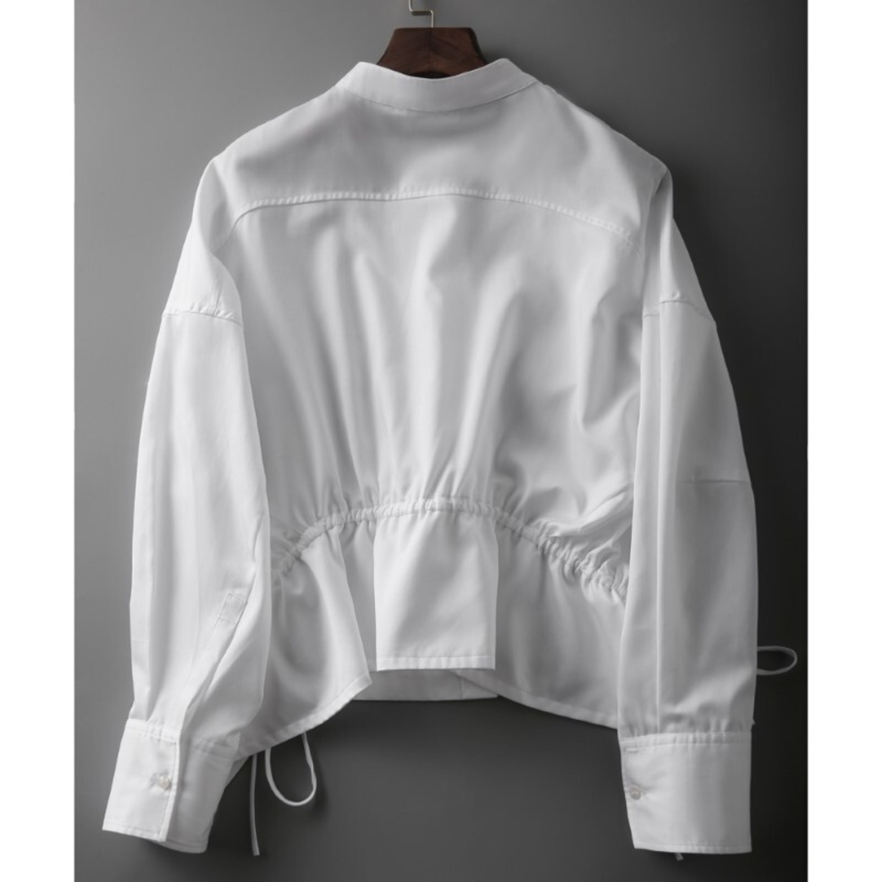 オールシーズンで使える白シャツにウエストをキュッと絞れるゴムが