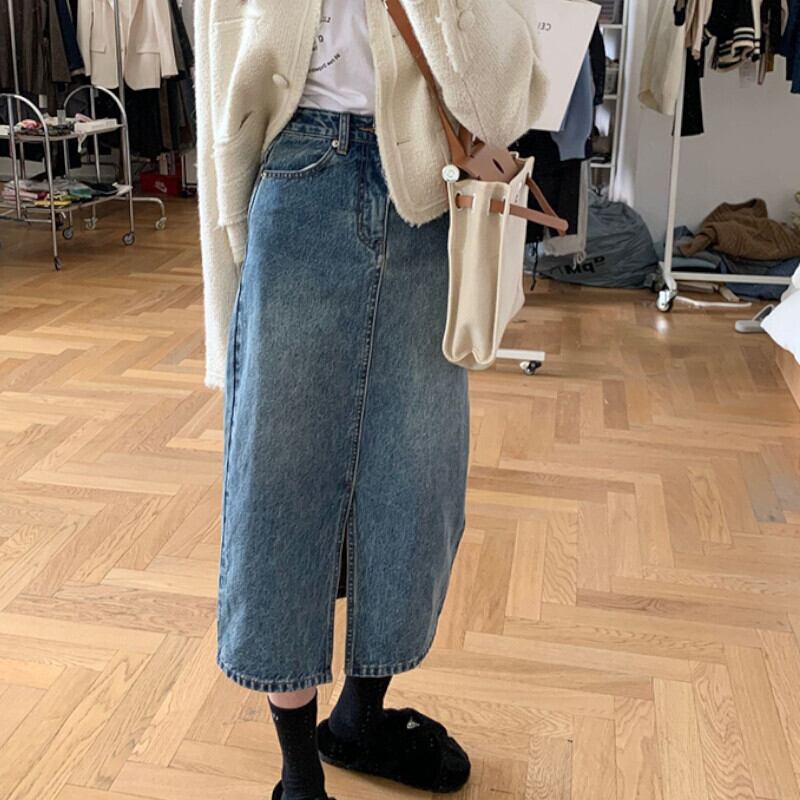 スカート ボトムス ひざ丈 ミモレ丈 Aライン ハイウエスト スリット きれいめ シンプル カジュアル 大人 上品 おしゃれ レトロ こなれ感 エレガント フェミニン 無地 秋 冬 10代 20代 30代 40代 レディース 学生 通学 デート お出かけ 女子会 リゾート 旅行 着回し 普段使い 韓国系 オルチャン ファッション コーデ スタイル モテ 体型カバー トレンド S M L XL 青 ブルー | ATAOI