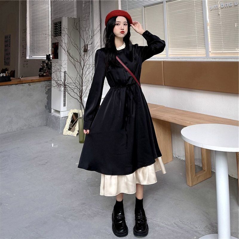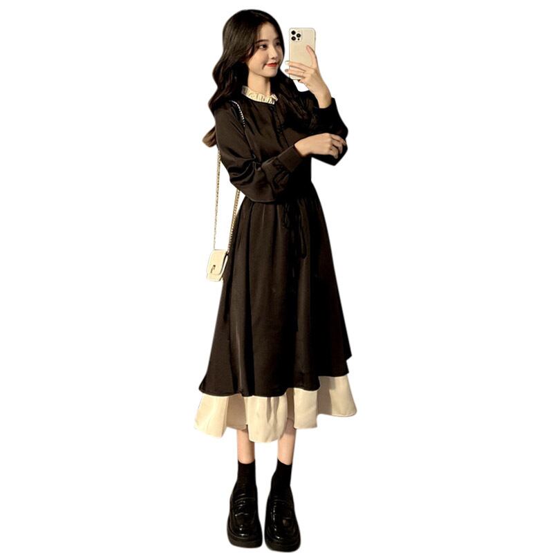 ロングワンピース ロングスカート フレアスカート フレアワンピース ミモレ丈 ミディアム丈 袖あり 長袖 襟付き スタンドカラー フレア Aライン 切り替えデザイン ウエストマーク ウエストリボン かわいい 大人可愛い きれいめ 大人 おしゃれ レトロ 大人女子 こなれ感 キュート ガーリー 無地 秋 冬 10代 20代 30代 40代 レディース 通勤 学生 通学 デート お出かけ 女子会 パーティー イベント 旅行 ホテル レストラン M L XL 2XL 3XL 4XL 大きいサイズ ブラック | ATAOI