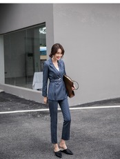 カジュアルスーツ パンツ アウター ジャケット ストレートパンツ レギュラー丈 袖あり 長袖 襟付き スリム ストレート ベルト ウエストマーク ポケット 前開き 大人可愛い きれいめ シンプル 上品 おしゃれ かっこいい 大人女子 こなれ感 マニッシュ クール エレガント 存在感 フォーマル ストライプ 春 入学式 入園式 卒業式 卒園式 20代 30代 レディース 女性用 ビジネス OL 通勤 お出かけ リクルート 就活 ファッション コーデ スタイル 脚長 サイズ S M L XL グレーブルー | ATAOI