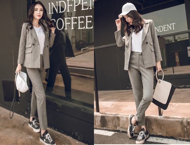 スーツ セットアップ ツーピース ジャケット パンツ 2点セット 袖あり 長袖 襟あり スーツ襟 Vネック ダブルポケット 後ろスリット ジッパー開閉 フィット 無地 大人可愛い かっこいい エレガント おしゃれ クール モダン 大人女子 シンプル カジュアル 春 秋 冬 イベント パーティー 10代 20代 30代 40代 レディース 女性用 オフィス ビジネス OL 通勤 通学 学生 オルチャンファッション ビジネスコーデ トレンド サイズ XS S M L XL カラー グレー ブラック | ATAOI
