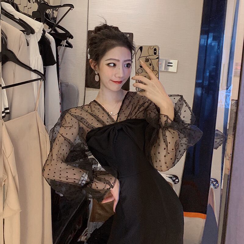 ドレス ワンピース パーティードレス 二次会ドレス 披露宴ドレス 膝丈ドレス 演奏会ドレス 発表会ドレス ステージドレス フォーマルドレス ブラックドレス ひざ丈 袖あり 長袖 ボリューム袖 Vネック タイト サイドスリット 切り替えデザイン ドッキング かわいい 大人可愛い きれいめ 大人 おしゃれ 大人女子 こなれ感 セクシー エレガント フォーマル エレガント 上品 10代 20代 30代 レディース パーティー 春 秋 結婚式 二次会 披露宴 お呼ばれ パーティー S M L ブラック | ATAOI