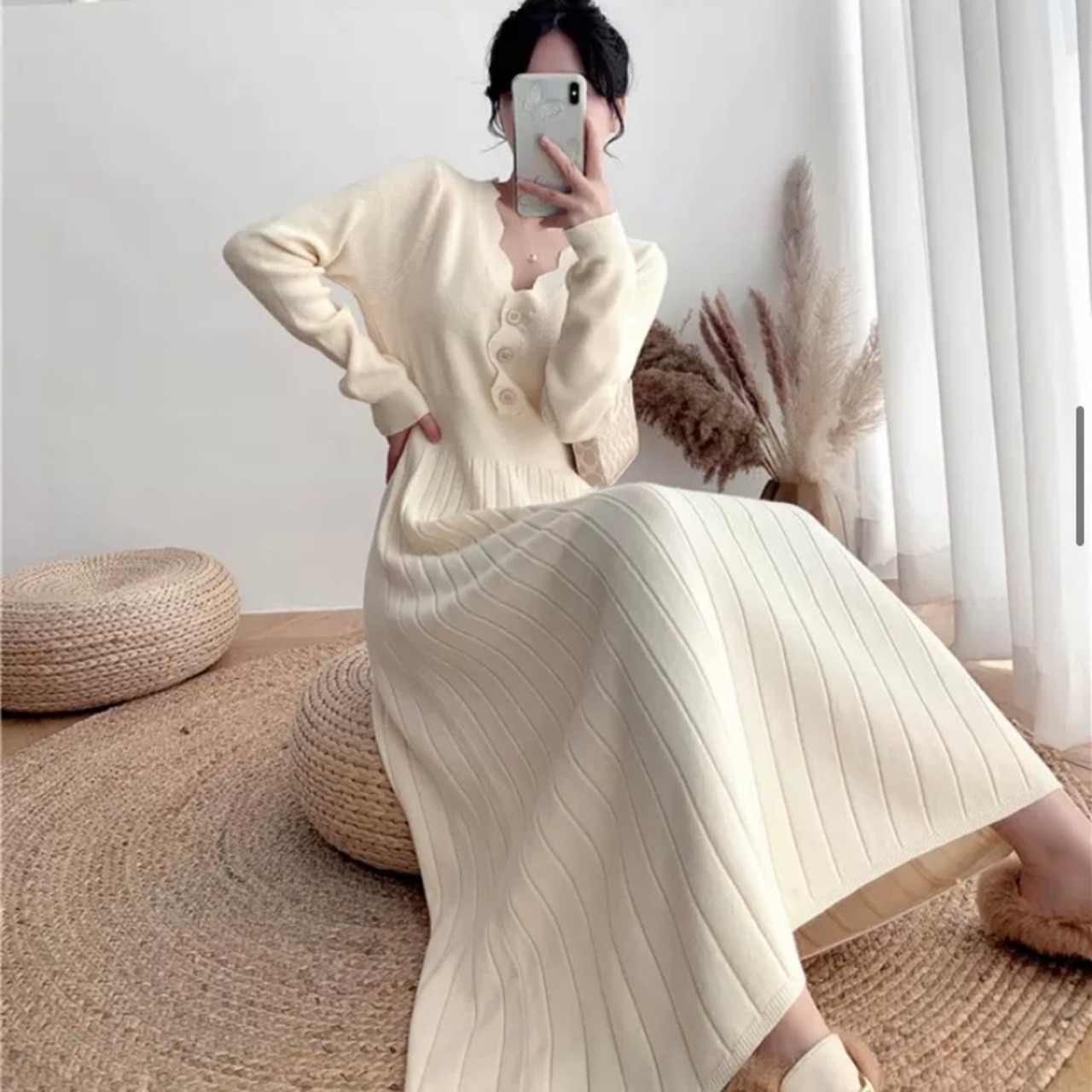 ワンピース ニットワンピース ミモレ ミモレ丈 ひざ下丈 長袖 Vネック フレア セミフレア プリーツ Aライン ウエストマーク 大人可愛い きれいめ シンプル カジュアル おしゃれ 上品 こなれ感 ラフ 抜け感 春 秋 冬 10代 20代 30代 40代 レディース 女性用 ママ 学生 通勤 OL 通学 デート お出かけ 女子会 休日 リゾート 旅行 ショッピング ホテル レストラン 普段使い トレンド インスタ映え 韓国 韓国系 モテ S M L XL ホワイト ブラック カーキ | ATAOI