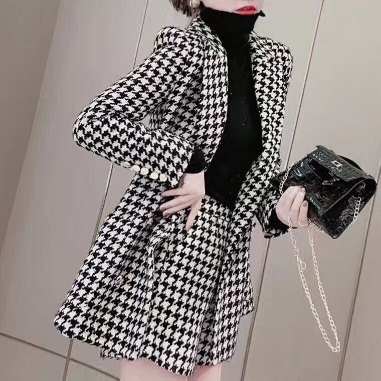 千鳥格子柄 セットアップ パンツ スーツ ジャケット ズボン ショートパンツ ショート ショート丈 袖あり 長袖 Vネック 上下セット 2点セット ツーピース おとなかわいい カジュアル 大人 おしゃれ お洒落 レトロ 大人可愛い 大人女子 千鳥格子 秋 冬 10代 20代 レディース 女性用 学生 通学 デート お出かけ 休日 着回し ファッション コーデ サイズ S M L XL 2XL 黒 ブラック モノトーン | ATAOI