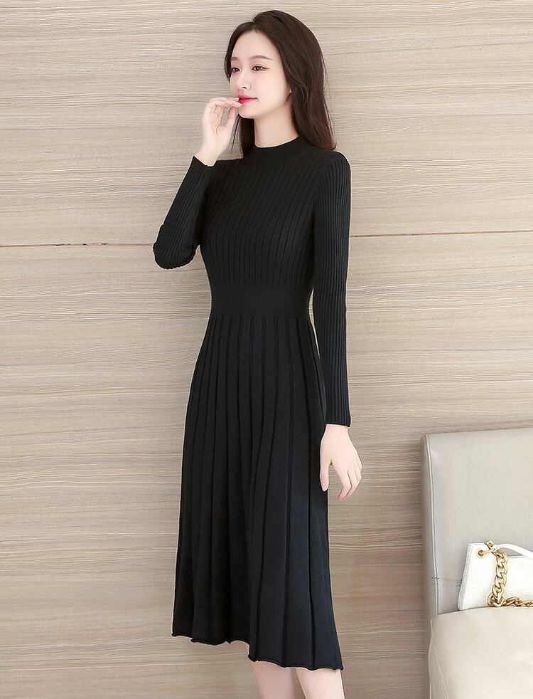 ワンピース ニットソー フレアスカート 膝丈 ひざ丈 袖あり 長袖 ハイネック 襟なし フレア プリーツ リブ かわいい 大人可愛い シンプル カジュアル 大人 上品 おしゃれ お洒落 大人可愛い 大人女子 無地 春 秋 10代 20代 30代 レディース 女性用 オフィス OL 通勤 学生 通学 デート お出かけ 女子会 普段使い 重ね着 ファッション コーデ スタイル 楽ちん サイズ S M L XL 2XL 色展開 黒 ブラック 赤 レッド アプリコット | ATAOI