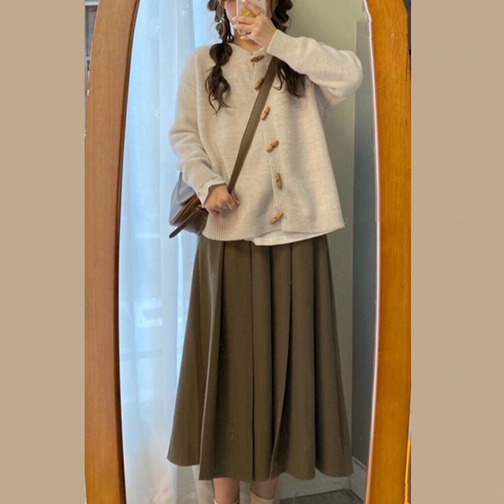 トップス スカート ニットソー カーディガン プリーツスカート 膝下 ミモレ ミモレ丈 袖あり 長袖 ラウンドネック 襟なし フレア プリーツ 前開き 上下セット 2点セット かわいい 大人可愛い シンプル カジュアル 大人 おしゃれ お洒落 大人可愛い 大人女子 ラフ ガーリー ルーズ 無地 春 秋 10代 20代 レディース 女性用 学生 通学 お出かけ 女子会 休日 着回し 普段使い 重ね着 コーデ 楽ちん 暖かい サイズ S M L XL 2XL 色展開 茶色 ブラウン アプリコット | ATAOI