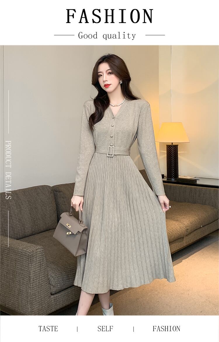 ワンピース ニットスカート ワンピドレス 膝下 ミモレ ミモレ丈 ロング ロング丈 袖あり 長袖 Vネック 襟なし フレア セミフレア Aライン ウエストマーク もこもこ モコモコ ふわふわ ニット かわいい 大人可愛い きれいめ 大人 上品 おしゃれ お洒落 大人可愛い 大人女子 主役級 存在感 フォーマル 無地 春 秋 冬 入学式 入園式 卒業式 卒園式 謝恩会 二次会 20代 30代 40代 50代 レディース 女性用 ママ ビジネス OL 通勤 通学 デート お出かけ 休日 プリーツ 黒ブラック | ATAOI