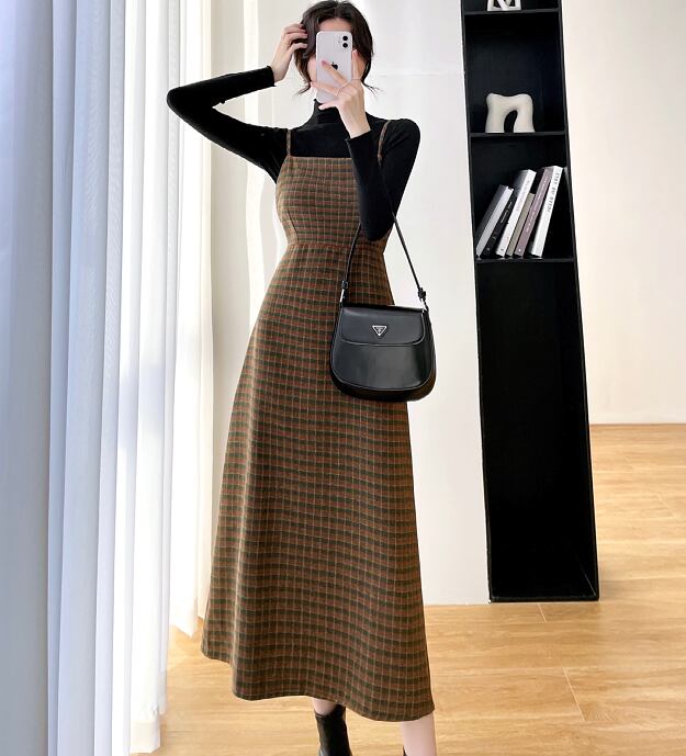 ワンピース ニットワンピース ミモレ ミモレ丈 ロング丈 長袖 ハイネック セミフレア Aライン ウエストマーク チェック 大人可愛い きれいめ シンプル カジュアル おしゃれ 上品 こなれ感 ラフ 抜け感 春 秋 冬 10代 20代 30代 40代 レディース 女性用 ママ 学生 通勤 OL 通学 デート お出かけ 女子会 休日 リゾート 旅行 ショッピング ホテル レストラン 普段使い トレンド インスタ映え 韓国 韓国系 モテ S M L XL ブラウン ブラック | ATAOI