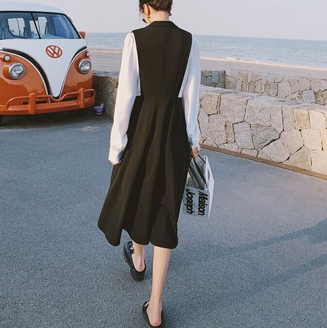 ワンピース シャツ ミモレ ミモレ丈 ひざ下丈 長袖 Vネック セミフレア Aライン ウエストマーク ボタン プリーツ 大人可愛い きれいめ シンプル カジュアル おしゃれ 上品 こなれ感 ラフ 抜け感 透け感 春 夏 秋 冬 シーズンレス 10代 20代 30代 40代 レディース 女性用 ママ 学生 通勤 OL 通学 デート お出かけ 女子会 休日 リゾート 旅行 ショッピング ホテル レストラン 普段使い トレンド インスタ映え 韓国 韓国系 モテ S M L XL ホワイト ブラック | ATAOI