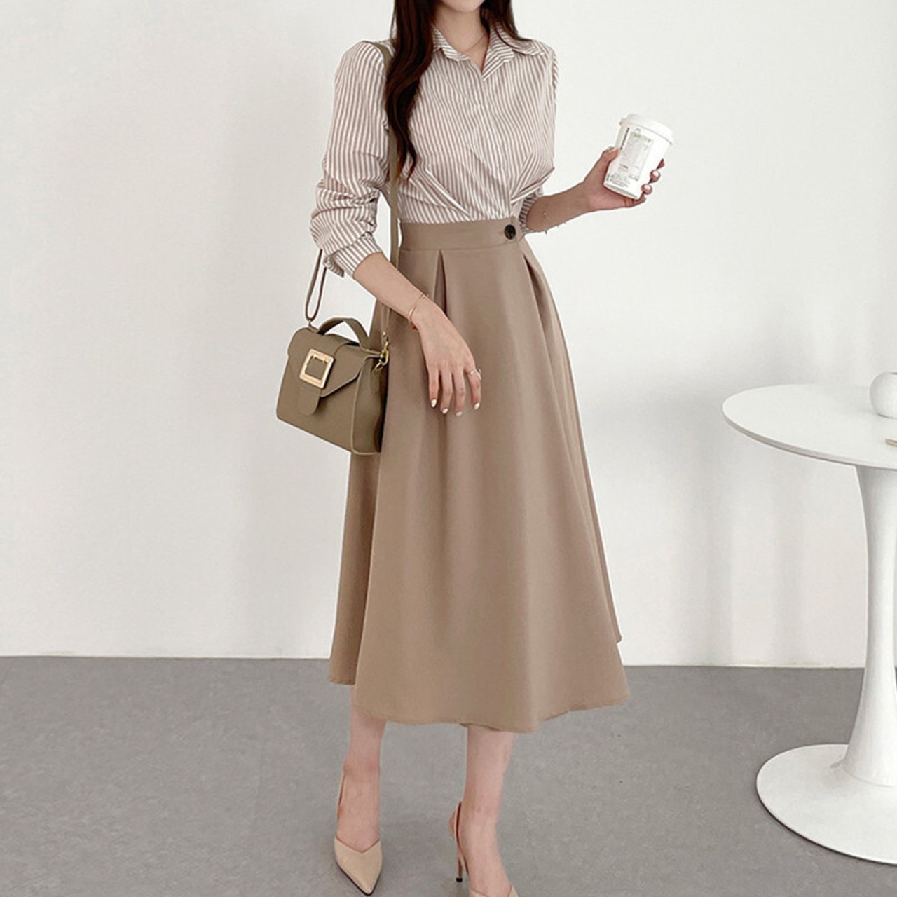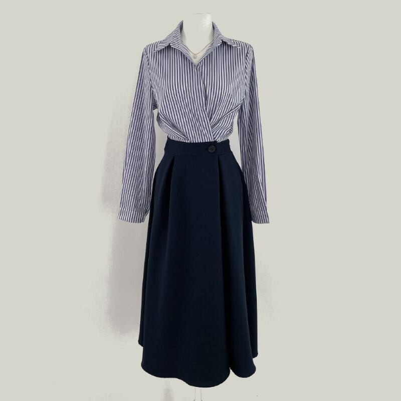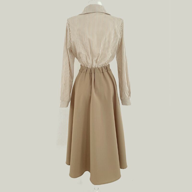 ワンピース シャツワンピース ミディアム丈 袖あり 長袖 襟付き Aライン 上下セット ツーピース きれいめ シンプル カジュアル 大人 上品 おしゃれ レトロ こなれ感 無地 ストライプ 春 秋 10代 20代 30代 40代 レディース オフィス ビジネス OL 学生 通学 デート お出かけ 女子会 休日 着回し 普段使い 韓国系 オルチャン ファッション コーデ スタイル 楽ちん モテ 体型カバー トレンド ワンサイズ ベージュ ネイビー アイボリー | ATAOI