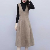ワンピース ジャンパースカート ひざ丈 ミディアム丈 袖あり 長袖 襟付き 上下セット ツーピース きれいめ シンプル カジュアル 大人 上品 おしゃれ レトロ こなれ感 無地 秋 冬 10代 20代 30代 40代 レディース オフィス ビジネス OL 学生 通学 デート お出かけ 女子会 休日 着回し 普段使い 韓国系 オルチャン ファッション コーデ スタイル 楽ちん モテ 体型カバー トレンド L XL 2XL 3XL 4XL 5XL ベージュ | ATAOI