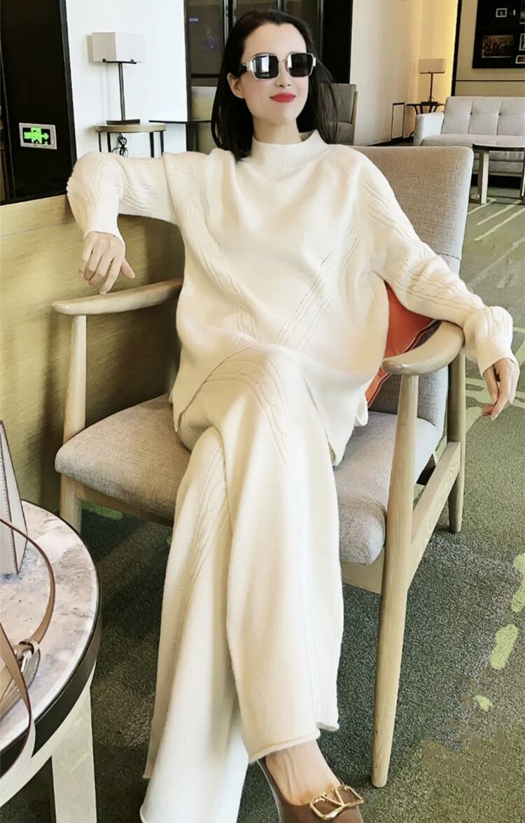 ツーピース トップス パンツ セットアップ ニットソー セーター ワイドパンツ 袖あり 長袖 萌袖 ハイネック ボトルネック ワイド ポケット ウエストゴム ケーブルニット かわいい 大人可愛い きれいめ シンプル 上品 おしゃれ 大人女子 こなれ感 ラフ ラブリー キュート ガーリー ルーズ エレガント とろみ感 無地 秋 冬 20代 30代 40代 レディース 女性用 女子会 休日 着回し 普段使い オルチャン ファッション コーデ スタイル 楽ちん 暖かい 体系カバー サイズ S M L XL | ATAOI