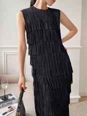 ワンピース ドレスワンピース ミモレ丈 ミモレ ひざ下丈 ノースリーブ クルーネック 襟なし タイト 細身 Iライン フリンジ 大人可愛い きれいめ シンプル 大人 上品 おしゃれ 大人可愛い 大人女子 個性的 クール モード系 エレガント モダン 主役級 存在感 春 夏 秋 冬 オールシーズン シーズンレス 誕生日 謝恩会 結婚式 二次会 披露宴 レディース 女性用 デート お出かけ 女子会 休日 パーティー イベント ホテル レストラン トレンド 韓国風 ブラック レッド フリーサイズ | ATAOI