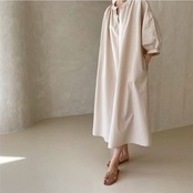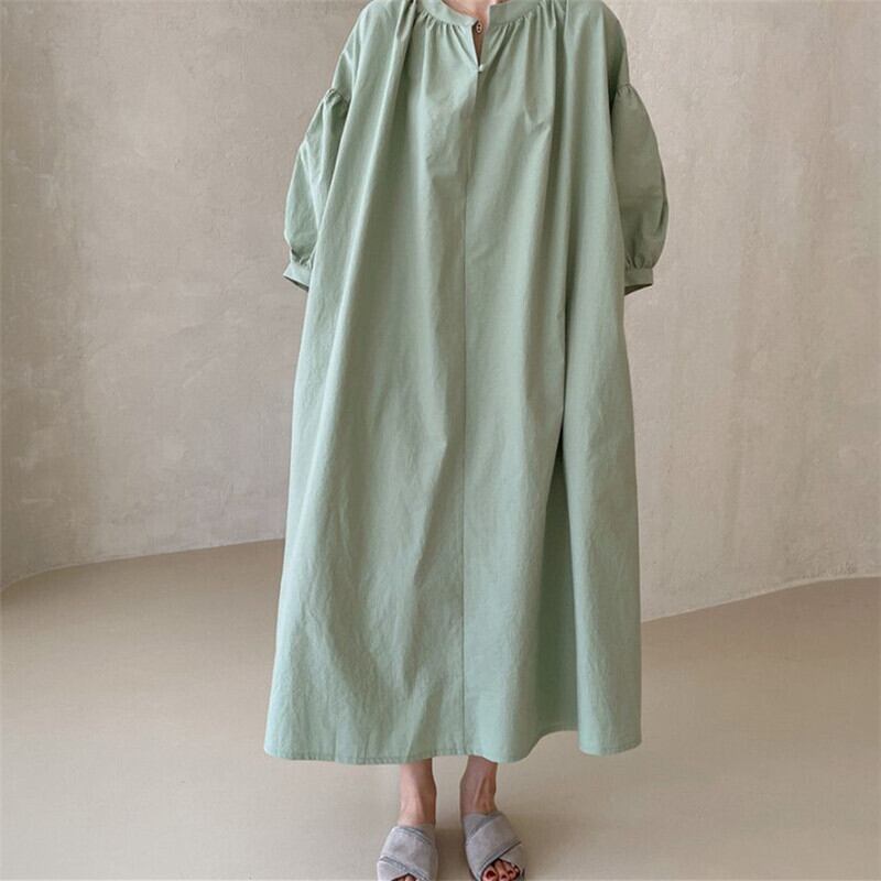 ワンピース ブラウス シャツワンピース ロング ロング丈 袖あり 長袖 ボリューム袖 襟なし プルオーバー かわいい 大人可愛い きれいめ 上品 おしゃれ お洒落 こなれ感 ラフ 個性的 存在感 無地 春 夏 秋 20代 30代 40代 50代 60代 レディース 女性用 OL 通勤 学生 通学 デート お出かけ 女子会 休日 ジム 着回し 普段使い お揃い 双子 コーデ スタイル 楽ちん S M L XL | ATAOI