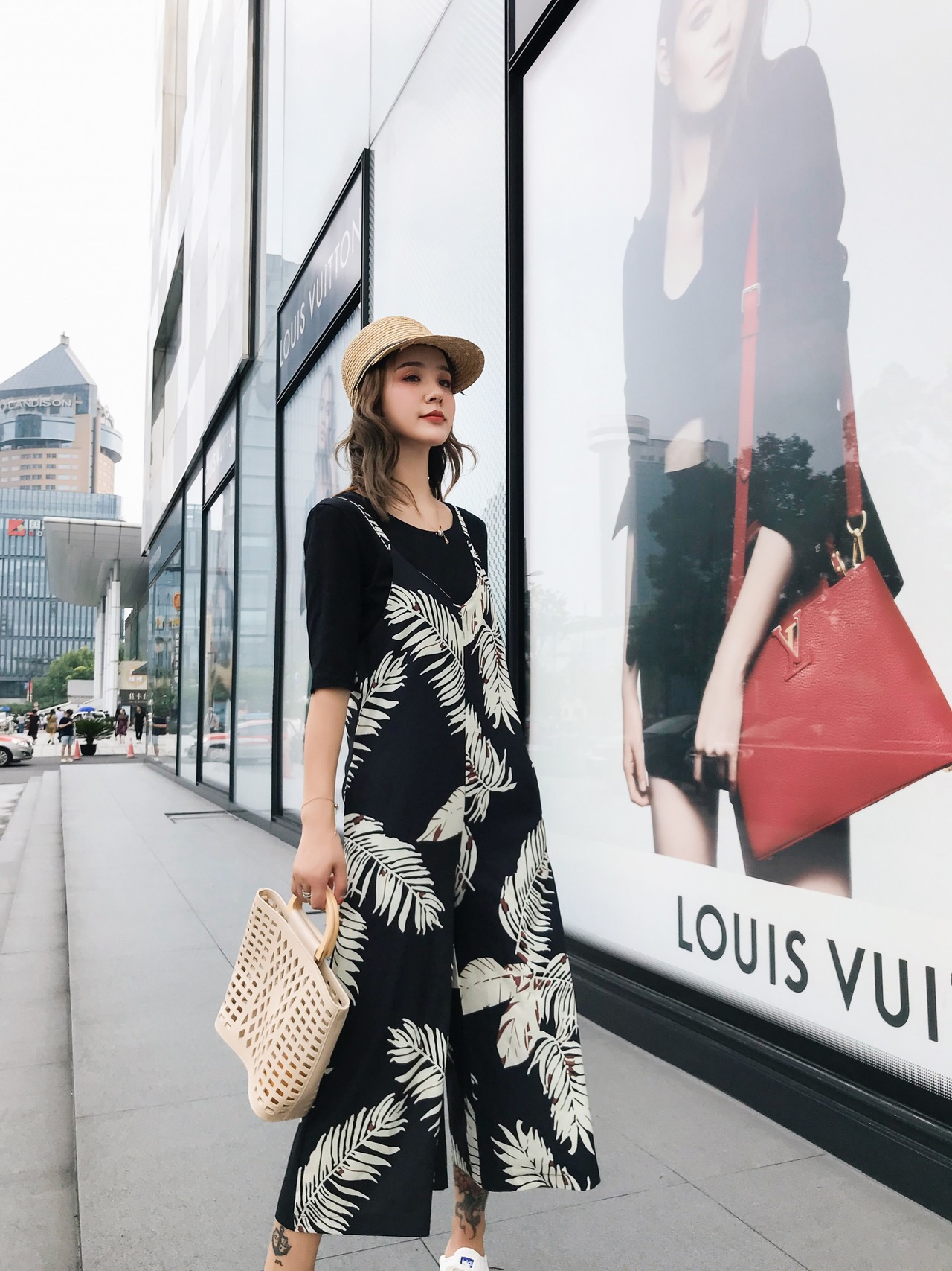 エレガントなボタニカルアートが印象的なオールインワンサロペット。
