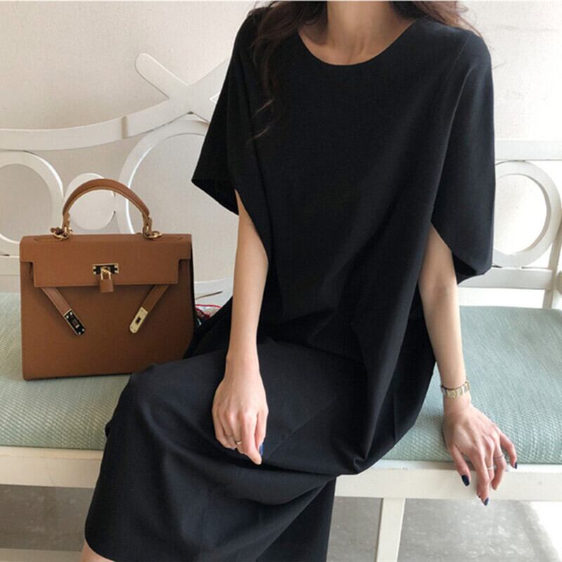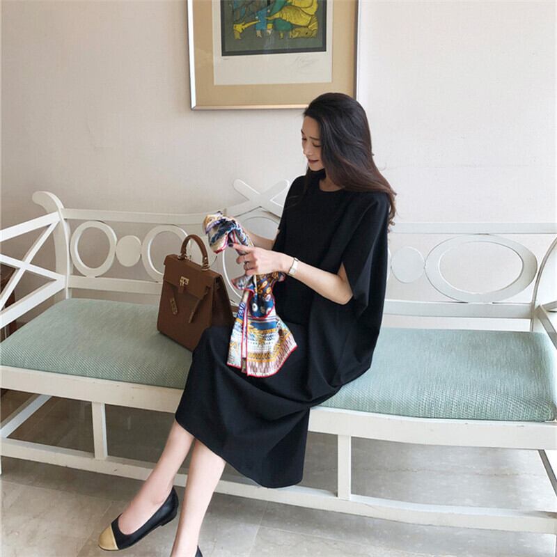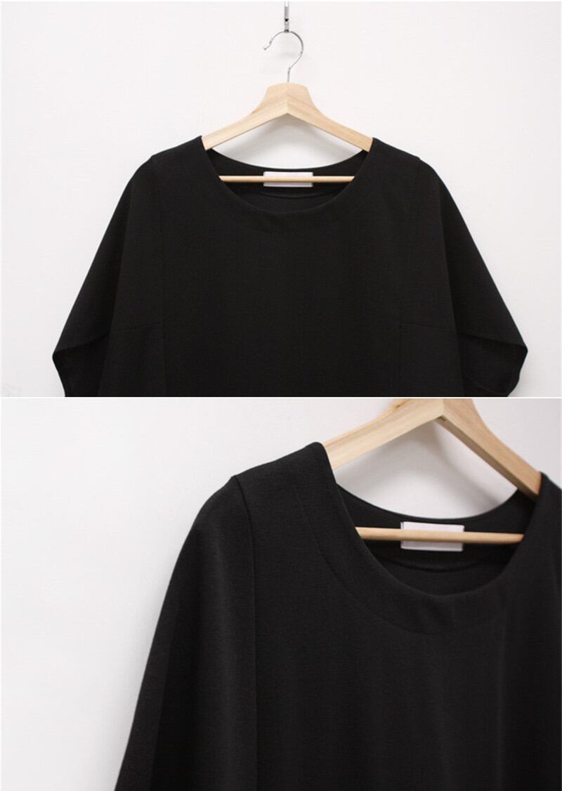 ワンピース 膝丈 ひざ丈 半袖 Uネック ラウンドネック セミフレア 大人可愛い シンプル カジュアル 大人 上品 お洒落 かっこいい レトロ エキゾチック 大人女子 こなれ感 ラフ ルーズ 個性的 クール モード系 主役級 存在感 とろみ感 抜け感 フェミン 無地 春 夏 秋 20代 30代 40代 50代 レディース ママ マタニティ デート お出かけ 公園 女子会 休日 リゾート 旅行 ショッピング 普段使い コーデ 楽ちん 体系カバー サイズ M L XL 黒 ブラック | ATAOI