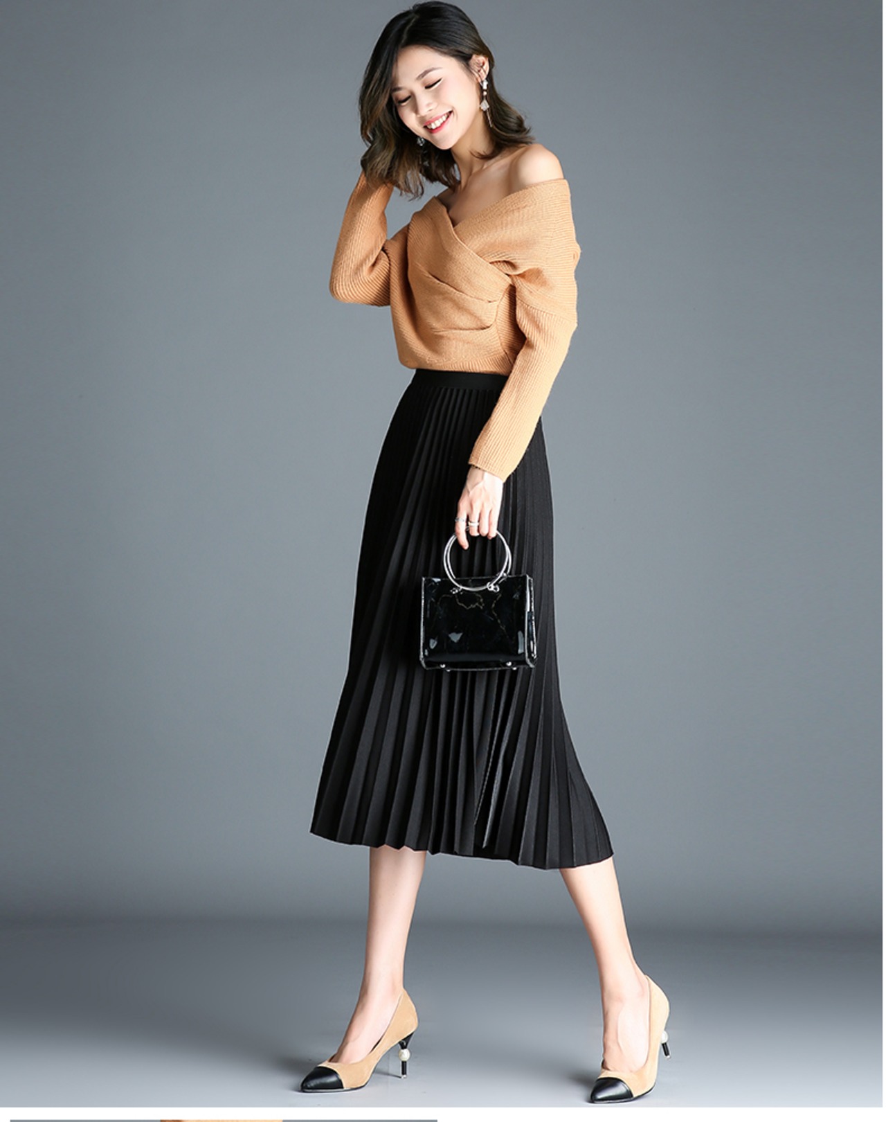 スカート ボトムス ロングスカート プリーツスカート ミドル丈 Aライン プリーツ ハイウエスト ウエストゴム ポリエステル かわいい 大人可愛い きれいめ シンプル 上品 おしゃれ レトロ 大人女子 こなれ感 ラブリー キュート ガーリー エレガント フォーマル とろみ感 無地 秋 20代 30代 レディース 女性用 OL 通勤 学生 通学 デート お出かけ 女子会 休日 パーティー イベント ショッピング 着回し 普段使い ファッション コーデ スタイル 楽ちん モテ 体系カバー 脚長 フリーサイズ | ATAOI