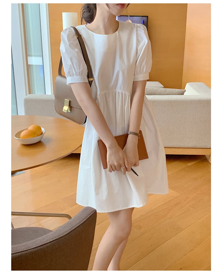 ワンピース フレアワンピース ミニ ミニ丈 ショート 膝上 半袖 パフスリーブ Uネック ラウンドネック 襟なし フレア セミフレア ウエストマーク ハイウエスト かわいい 大人可愛い きれいめ シンプル 大人 おしゃれ お洒落 レトロ 大人女子 こなれ感 キュート ガーリー ルーズ とろみ感 フェミン 無地 春 夏 10代 20代 レディース デート お出かけ 公園 休日 ショッピング 普段使い 韓国系 ファッション 楽ちん サイズ S M L XL 白 ホワイト | ATAOI