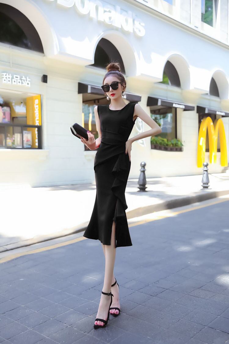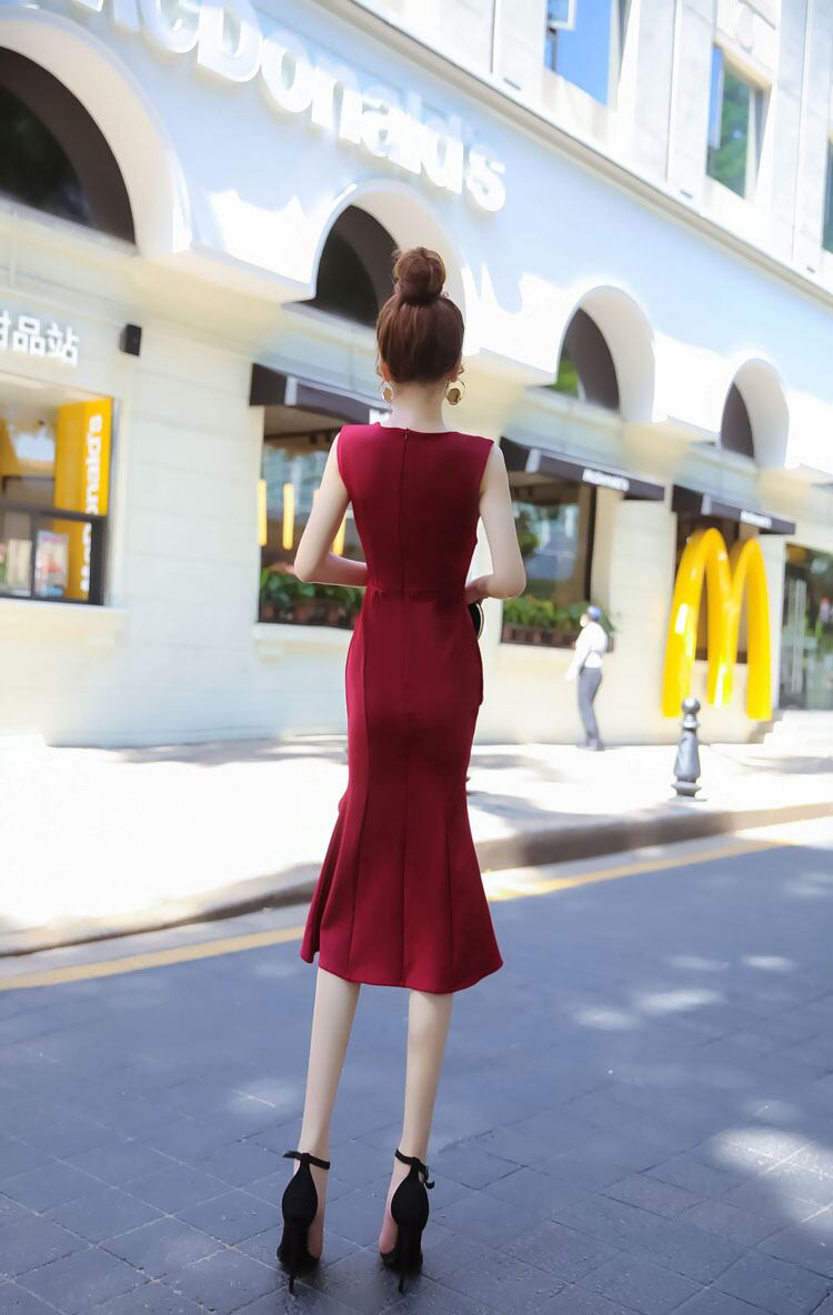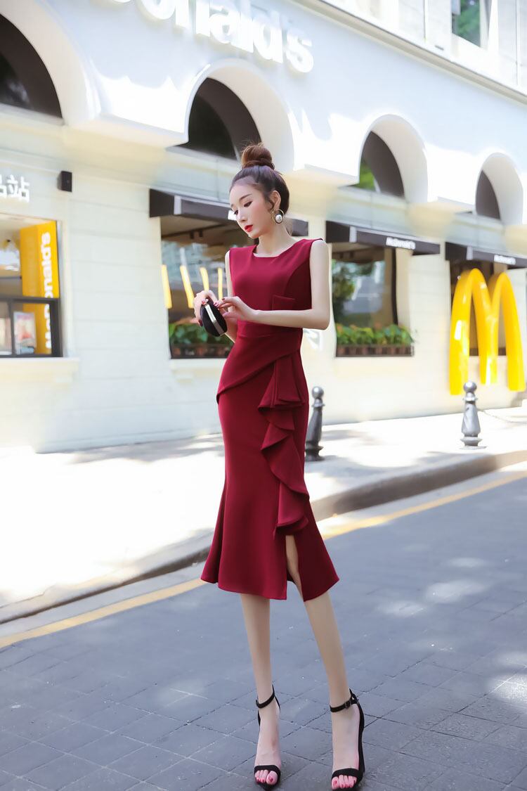 ワンピース ドレス ミドル丈スカート マーメイドスカート スリット フリル 袖なし 襟なし ラウンドネック ウエストマーク ハイウエスト スリムフィット 無地 セクシー シック 上品 エレガント おしゃれ クール モダン 大人女子 存在感 主役級 春 夏 秋 冬 イベント パーティー 結婚式 10代 20代 30代 40代 レディース 女性用 ホテル レストラン リゾート オルチャンファッション パーティーコーデ トレンドサイズ S M L XL カラー ホワイト レッド ブラック | ATAOI