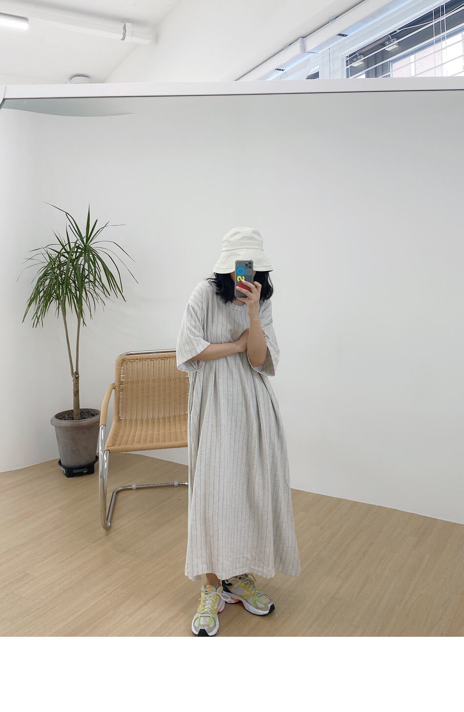 コットンとリネンの素材でデザインされた優しい肌触りのロングワンピース。
