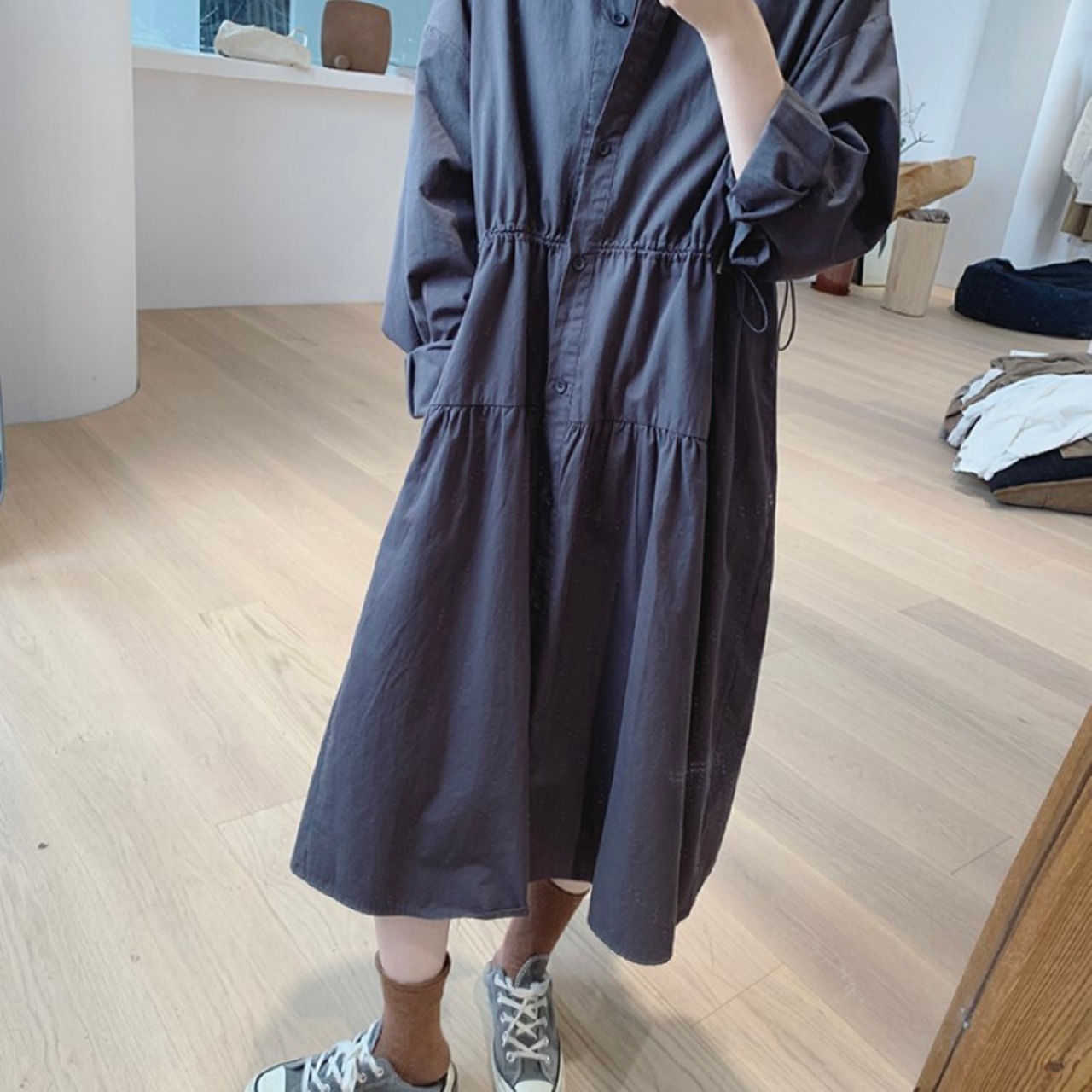 ワンピース シャツワンピース 膝下 ミドル ミドル丈 袖あり 長袖 ポロカラー 襟付き Aライン ハイウエスト 綿 大人可愛い きれいめ シンプル カジュアル 上品 おしゃれ 大人女子 こなれ感 フォーマル 抜け感 無地 春 夏 20代 30代 40代 レディース 女性用 OL 通勤 デート お出かけ 休日 パーティー イベント リゾート 旅行 高原 ホテル ガーデン レストラン 普段使い 韓国 楽ちん 体系カバー ブラウン パープル シルバーグレー グレー 春秋カラー フリーサイズ | ATAOI