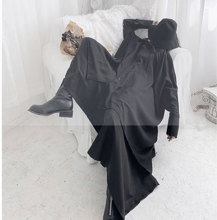 トップス ブラウス ロング ロング丈 袖あり 長袖 襟付き スタンドカラー フレア ワイド アシンメトリー 綿 薄手 かわいい 大人可愛い きれいめ シンプル 大人 おしゃれ かっこいい 大人女子 こなれ感 ラフ ルーズ 個性的 クール モード系 モダン 主役級 存在感 抜け感 無地 春 秋 10代 20代 30代 レディース 女性用 学生 通学 デート お出かけ 休日 旅行 着回し ファッション コーデ スタイル 楽ちん モテ 新作 トレンド 流行 インスタ映え イメチェン 好感度 | ATAOI