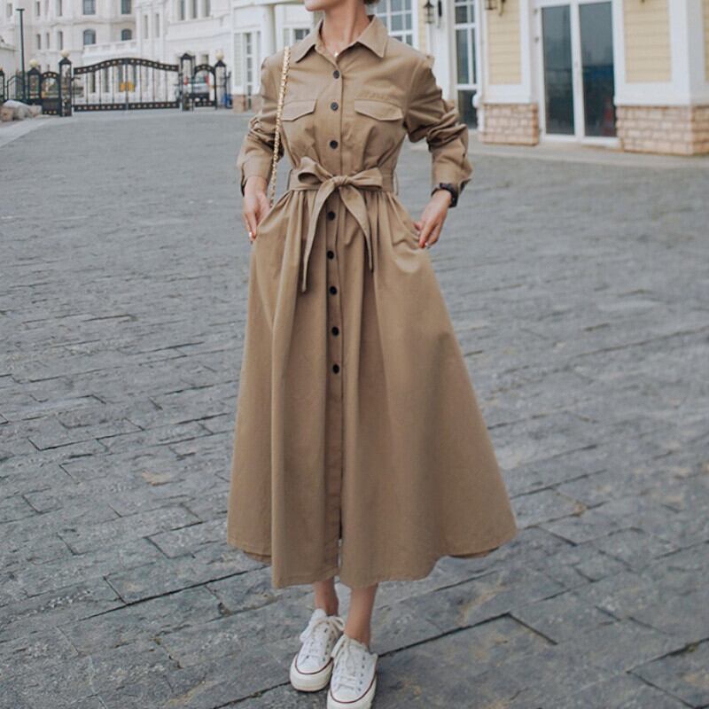 ワンピース シャツワンピース ロング 袖あり 長袖 襟付き 大人可愛い きれいめ シンプル カジュアル 大人 上品 おしゃれ レトロ こなれ感 エレガント 無地 花柄 秋 冬 10代 20代 30代 40代 レディース デート お出かけ 女子会 休日 お呼ばれ 着回し 普段使い 韓国系 オルチャン ファッション コーデ スタイル 楽ちん モテ 体型カバー トレンド S M L XL 2XL ベージュ | ATAOI
