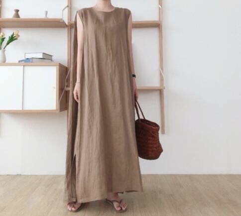 ワンピース プルオーバー シャツワンピース マキシ マキシ丈 袖なし ノースリーブ ラウンドネック Aライン 前開き 綿 かわいい 大人可愛い きれいめ シンプル カジュアル 大人 上品 おしゃれ かっこいい レトロ アジアン 大人可愛い 大人女子 こなれ感 ラフ キュート ガーリー モード系 フォーマル 無地 春 夏 レディース デート お出かけ 休日 着回し 普段使い 重ね着 お揃い 韓国 韓国系 オルチャン ファッション スタイル モテ 美脚 脚長 サイズ | ATAOI