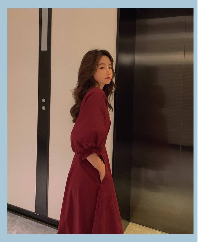 ワンピース フレアワンピース 膝下 ミモレ ミモレ丈 ミディアム丈 袖あり 7分袖 七分袖 ボリューム袖 バルーンスリーブ Vネック フレア Aライン ハイウエスト かわいい 大人可愛い きれいめ シンプル 大人 上品 おしゃれ お洒落 清潔感 大人女子 こなれ感 ラブリー キュート ガーリー エレガント 抜け感 フェミニン ロマンチック 無地 春 夏 秋 レディース 女性用 デート お出かけ 普段使い 韓国系 オルチャン モテ 体系カバー 美脚 脚長 赤 レッド 黄色 イエロー 2色展開 | ATAOI